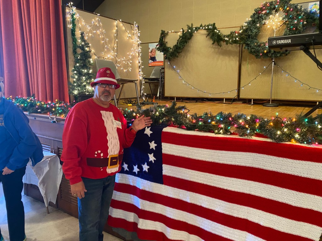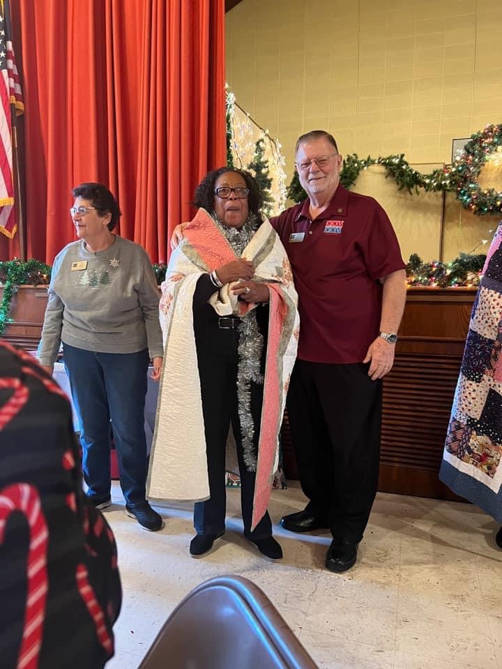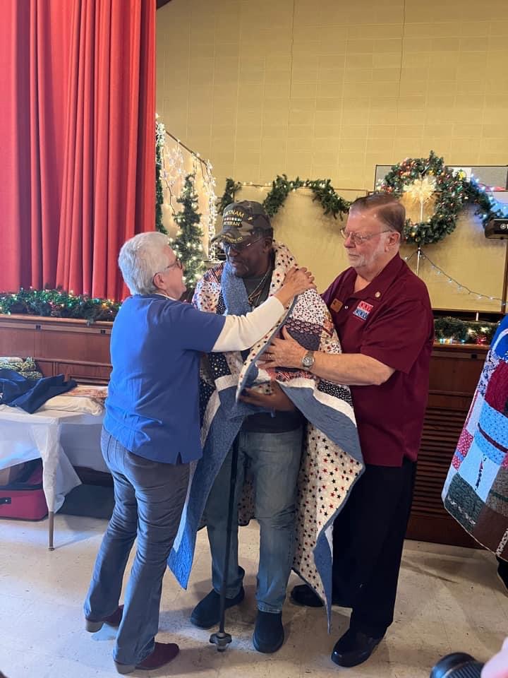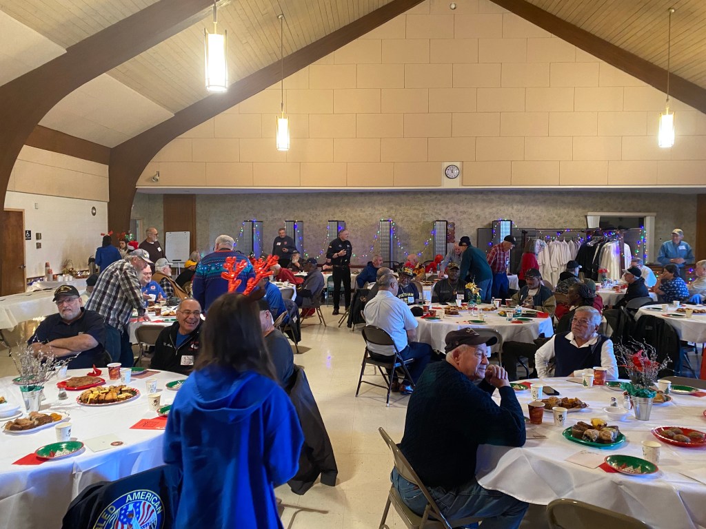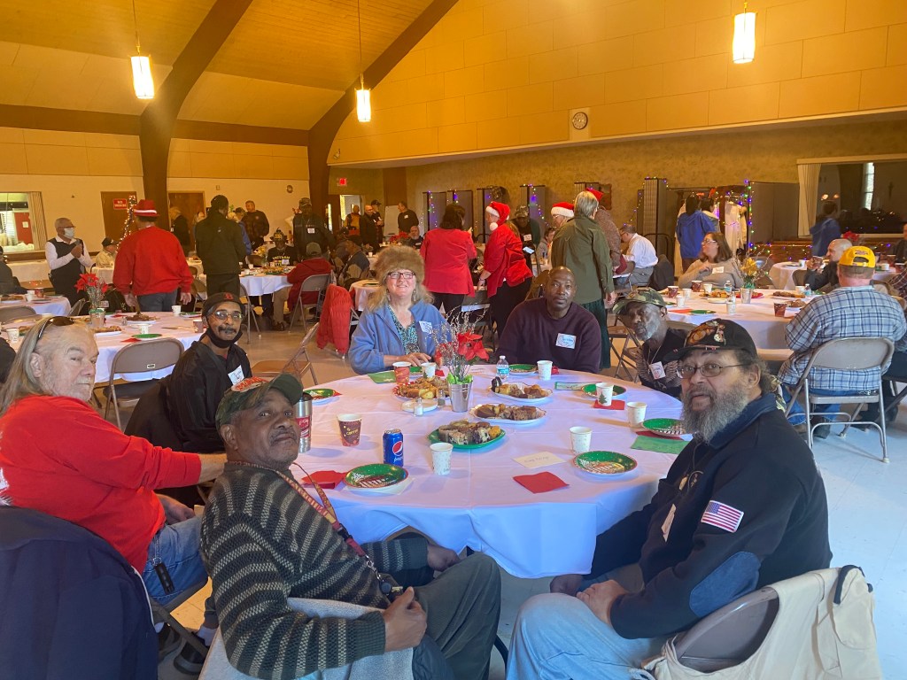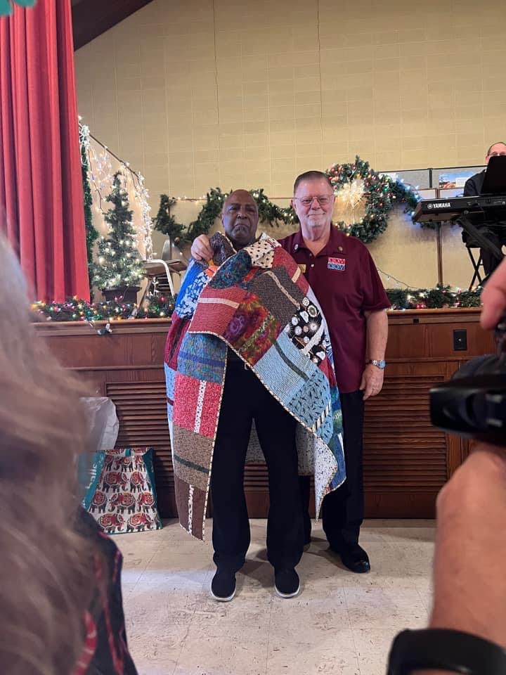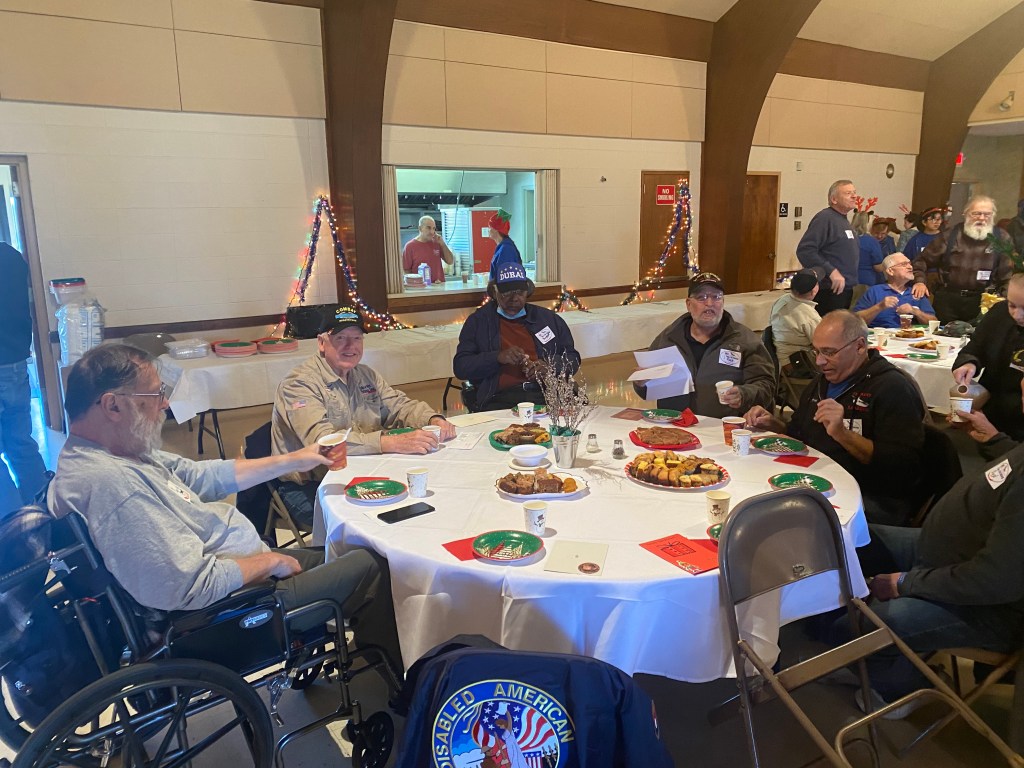The food was excellent, plentiful, and served with a smile. The quilts present by “Quilts of Valor” really brought smiles out of five of the veterans, Gottfried Beisel USN, Gill Simmons USA, Bonnie Mills USAF, Lenny Hunter USA, and Jocelyn Hudson Brown USA. Happy Holidays and best wishes in the New Year to all the volunteers and Veterans that came out to enjoy this special day.