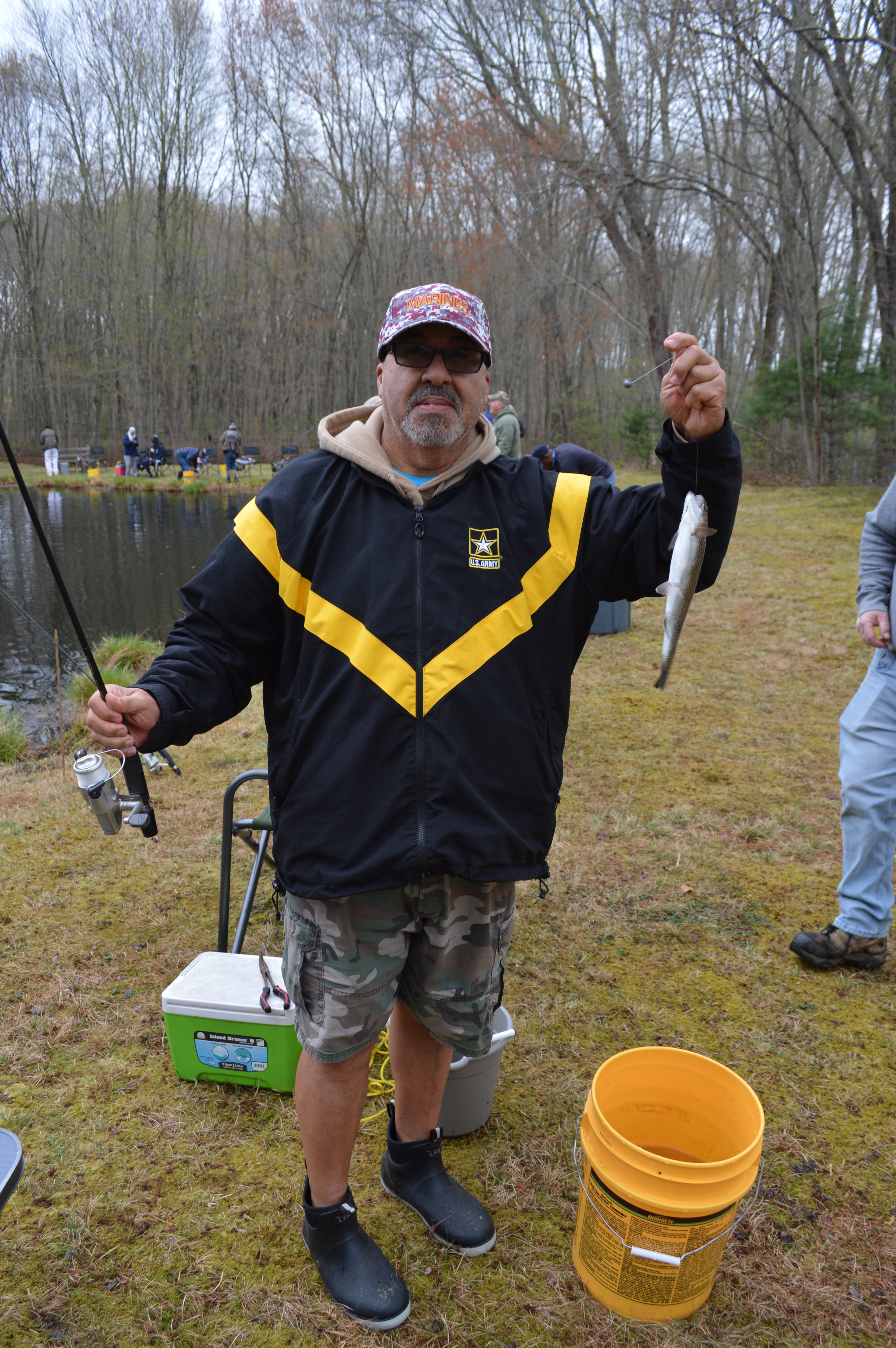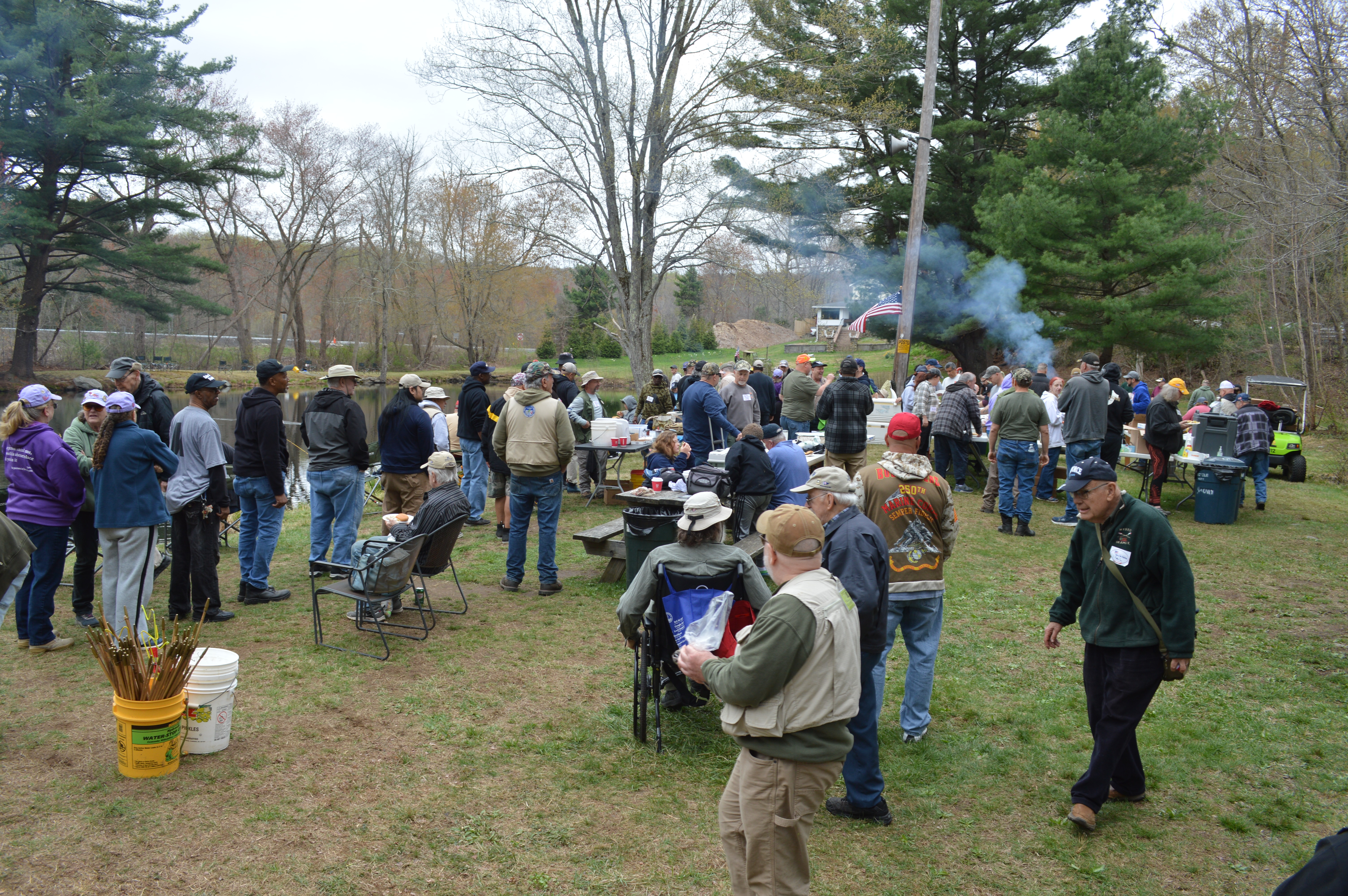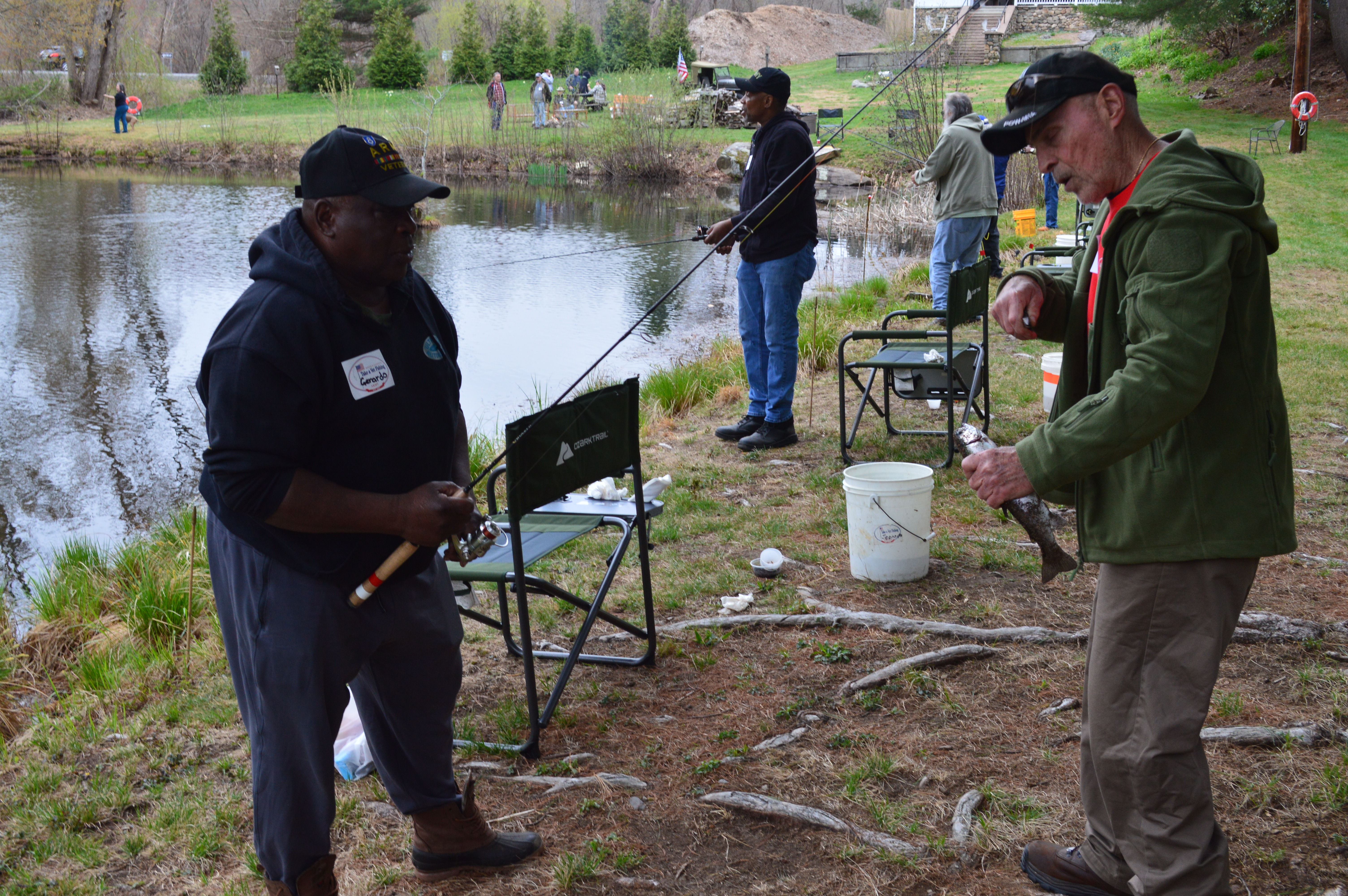 “I went fishing this past Saturday 18APR26 at a TAVzF event at The East Glastonbury Fish and Game Club in Marlborough, CT. It was Phenomenal!!! There were over 100 vets there fishing (and catching big trout), everything was provided – fishing pole, bait, bucket, rod holder, etc. They even provided coffee, juice, and donuts in the morning. Lunch (hot dogs, hamburgers, potato and macaroni salad and drinks at noon, They even cleaned and bagged the fish you caught. There was a raffle where 3 trout fishing poles and reels and tackle boxes and 2 gift cards were the prizes.