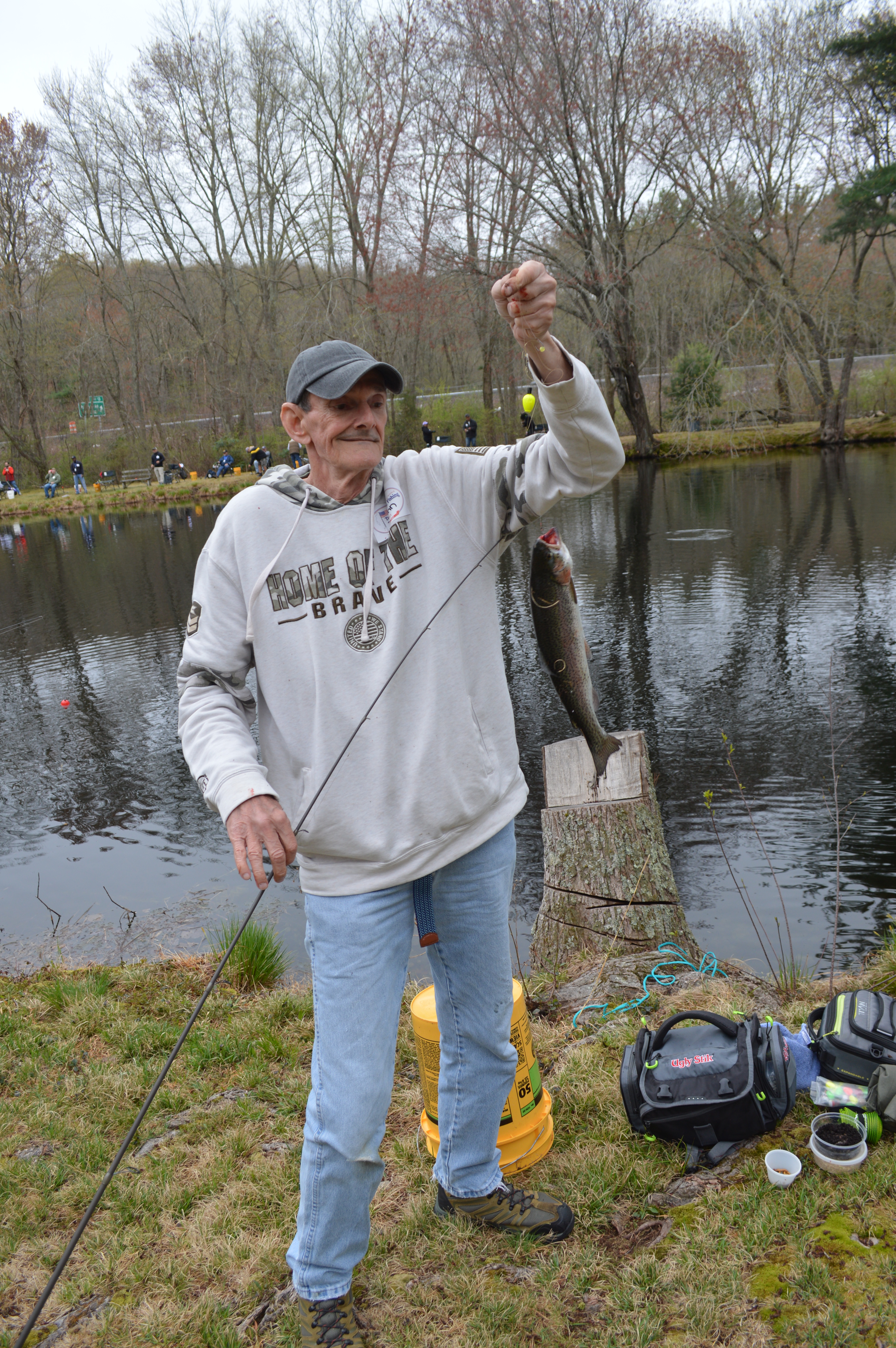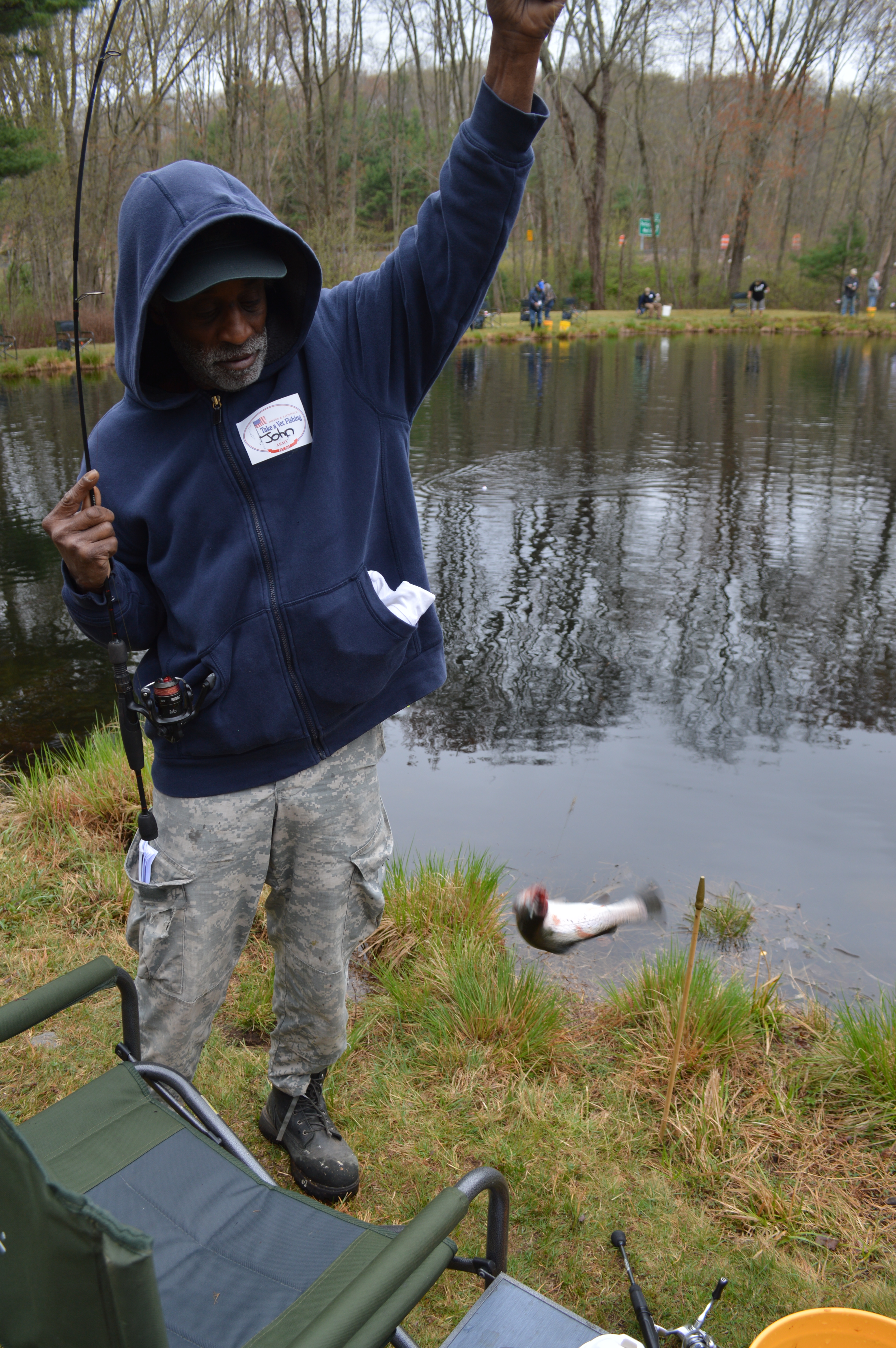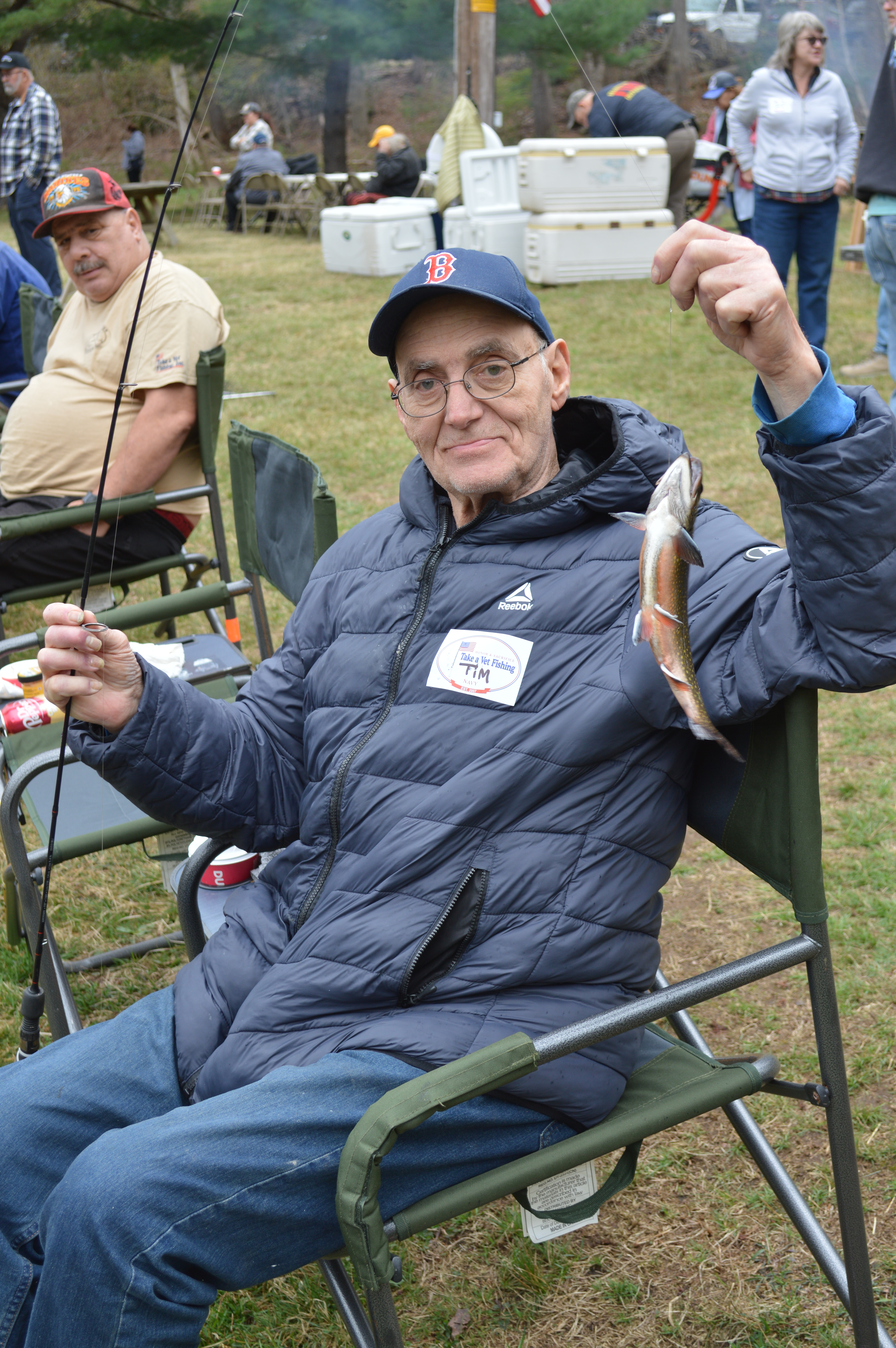“I went fishing this past Saturday 18APR26 at a TAVzF event at The East Glastonbury Fish and Game Club in Marlborough, CT. It was Phenomenal!!! There were over 100 vets there fishing (and catching big trout), everything was provided – fishing pole, bait, bucket, rod holder, etc. They even provided coffee, juice, and donuts in the morning. Lunch (hot dogs, hamburgers, potato and macaroni salad and drinks at noon, They even cleaned and bagged the fish you caught. There was a raffle where 3 trout fishing poles and reels and tackle boxes and 2 gift cards were the prizes.
